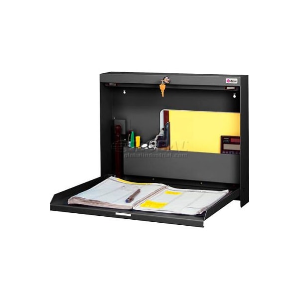 Datum WallWrite Locking, Folding Wall Mount Desk, 20"W x 3-3/8"D x 16-3/8"H, Black