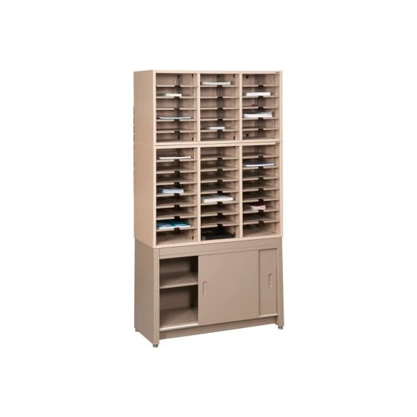 letter sized literature cabinet rack with base cabinet that includes adjustable intermediate shelf and leveling glides