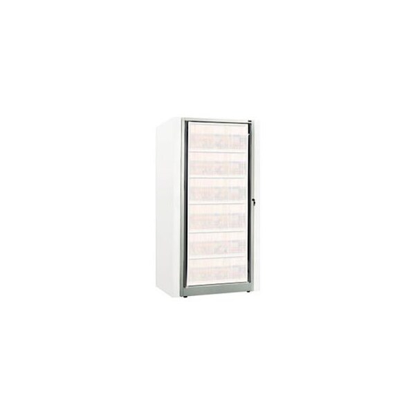 the ez2 base is formed out of 13 gauge steel with 13 gauge steel formed u-channel reinforcements. These 13 gauge steel channels have a 4" wide x 3-1/2" deep cross section and run the full length and width of the base. At each corner, a welded steel 11 gauge gusset adds strength and rigidity to the base. The base mechanism provides 90 indexing of the rotary file cabinet. Each ez2 unit has (4) upright posts with dual durometer pvc closing strips.