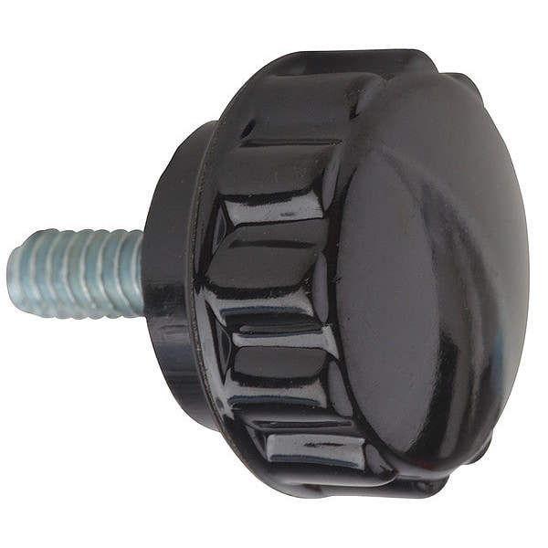 Hand Knob, Handle Type Fluted, Handle Material Thermoset, Mounting Type Threaded Stud, Thread Size #10-24, Thread Standard UNC, Handle Dia. 7/8 in, Base Dia. 5/8 in, Overall Height 0.5 in, Screw Length 1/2 in, Overall Length 1.05 in, Tap Type Not Applicable, Standards Steel, Zinc Plated, Thread Type UNC, Color Black, Features For Industrial Machinery, Medical, General Equipment and Other Industrial Applications, Finish High Gloss, Zinc Plated Component