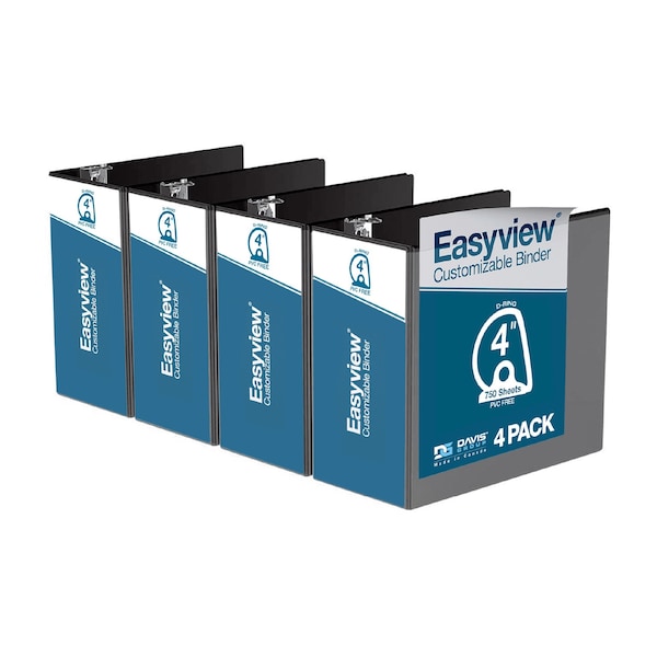 Easyview Premium, Angle D Ring, Customizable, View Binder, (Black, 4"), PK4