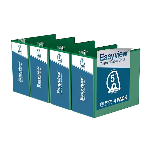 Easyview Premium, Angle D Ring, Customizable, View Binder, (Green, 5"), PK4