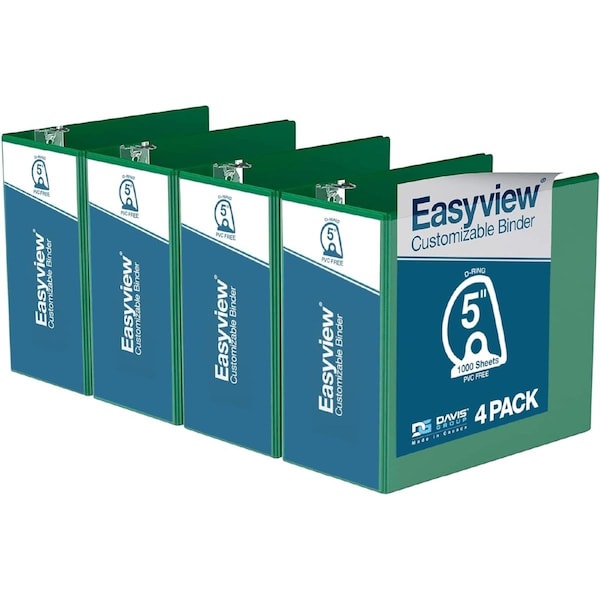 Easyview Premium, Angle D Ring, Customizable, View Binder, Green, 5FT, 4PK