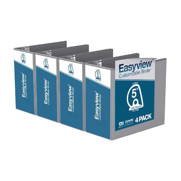 Easyview Premium, Angle D Ring, Customizable, View Binder, (Grey, 5"), PK4