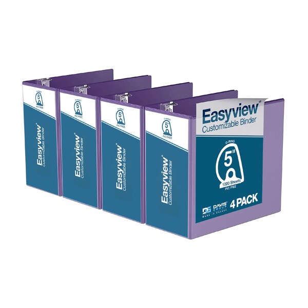 Easyview Premium, Angle D Ring, Customizable, View Binder, (Purple, 5"), PK4