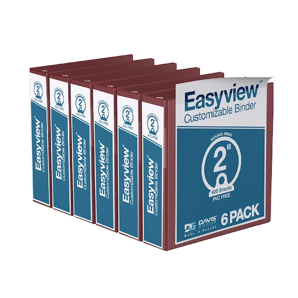 Easyview Premium, Round Ring, Customizable, View Binder, (Burgundy, 2"), PK6