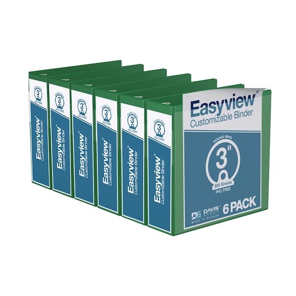 Easyview Premium, Round Ring, Customizable, View Binder, (Green, 3"), PK6