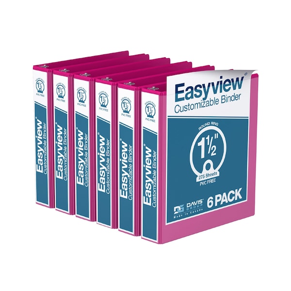 Easyview Premium, Round Ring, Customizable, View Binder, (Pink, 1.5"), PK6