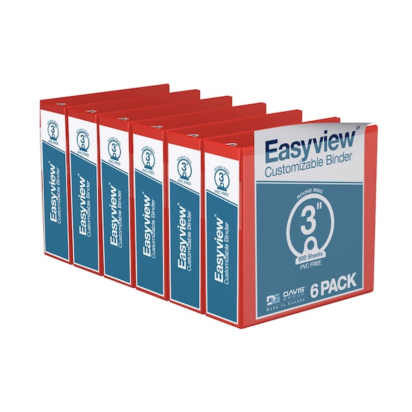 Easyview Premium, Round Ring, Customizable, View Binder, (Red, 3"), PK6