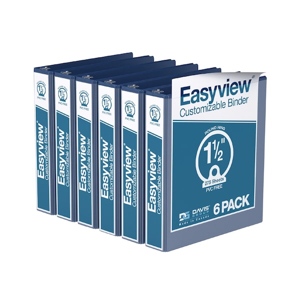 Easyview Premium, Round Ring, Customizable, View Binder, (Royal Blue, 1.5"), PK6