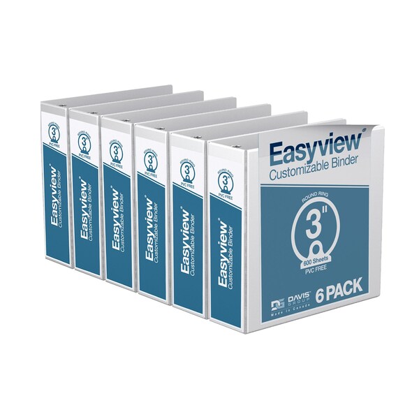 Easyview Premium, Round Ring, Customizable, View Binder, (White, 3"), PK6