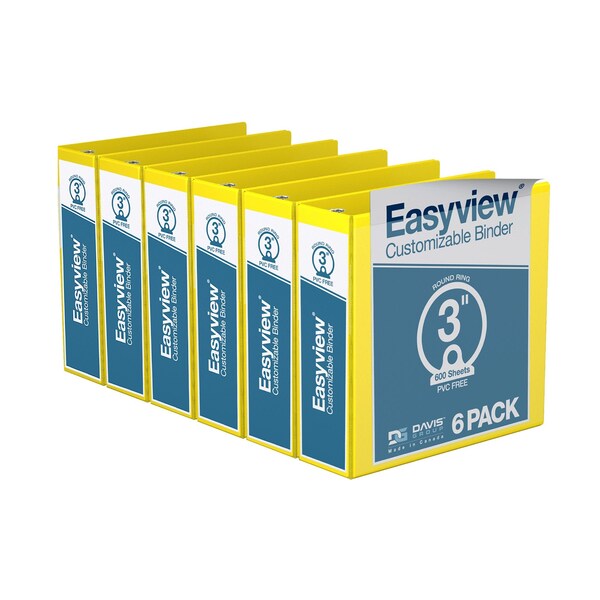 Easyview Premium, Round Ring, Customizable, View Binder, (Yellow, 3"), PK6