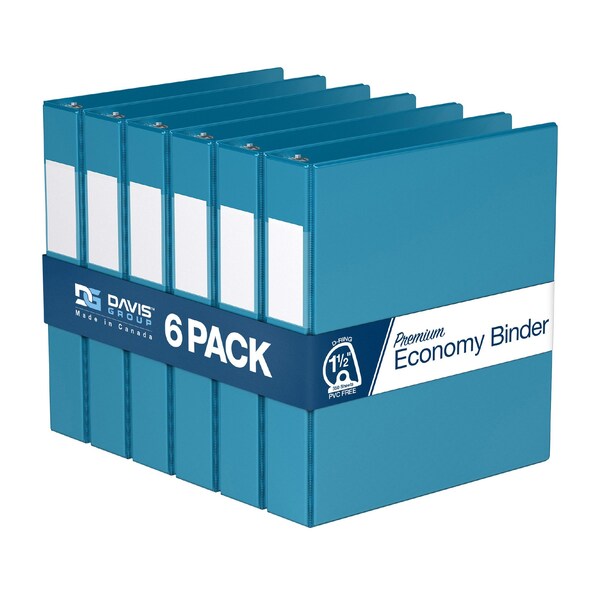 Premium Economy, Angle D Ring, Binder, (Turquois Blue, 1.5"), PK6
