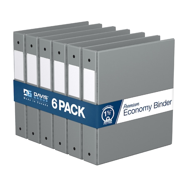 Premium Economy, Round Ring, Binder, (Grey, 1.5"), PK6