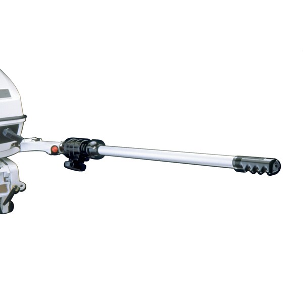 Handi-Mate Extension Handle #1440 Outboard Extension Handle fits virtually all twist-grip outboard motors! Handi-Mate extends handle from 30 to 47" (.76 to 1.19 meters). Easy to install - tough polycarbonate head simply clamps over existing handle grip. Does not affect throttle tension adjustment. Depress button & align proper hole for desired length. Lightweight - only 16 oz. (454 grams) Non-slip comfort grip Access hole for kill button Turn-locking knob makes securing and removing easy Anodized aluminum - no parts to rust or corrode Stainless steel hardware