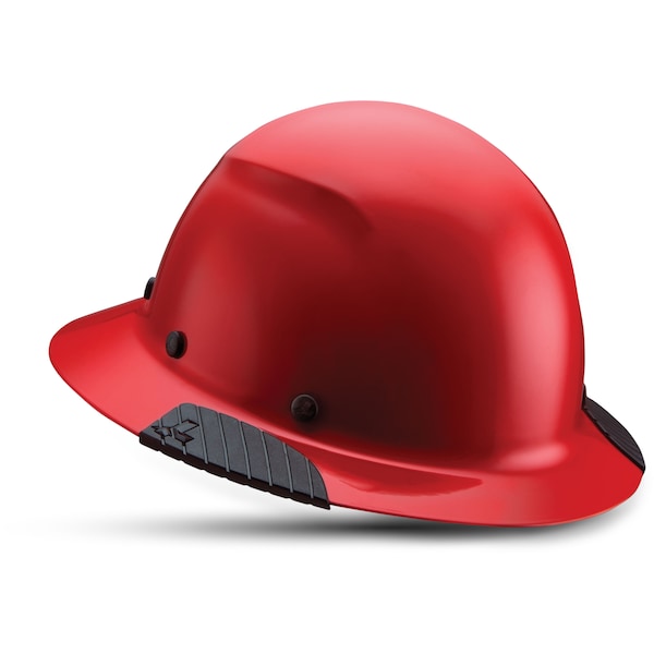 Full brim style, red. Fiber reinforced resin for superior impact protection. Exclusive brim grip design provides secure feel. Preforated synthetic leather comfort dome with molded EVA foam insert and triple reinforced crown for superior shock absorbing and impact protection. Easy size adjustability and 6 point suspension system for secure, comfortable fit. Moisture wicking liner. Meets ANSI Z89.1-2014 requirements for Type 1 Class G