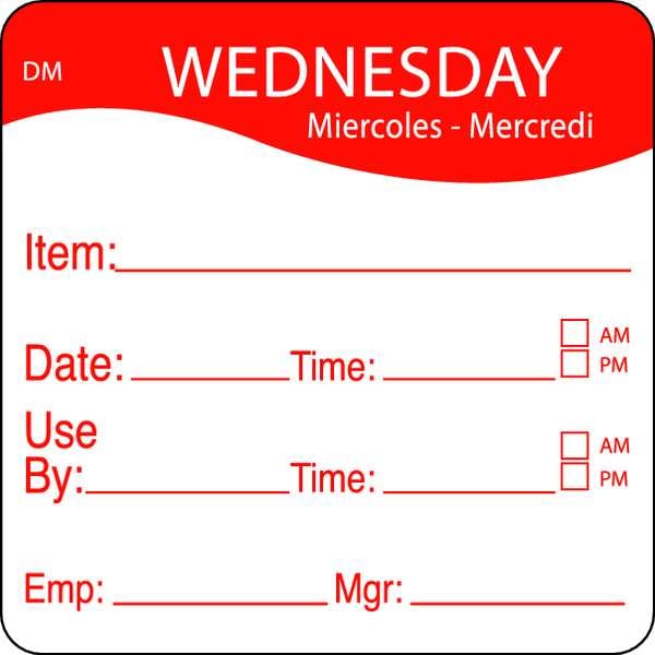 Day Label, Wednesday, 2-2/5 In. W, PK250