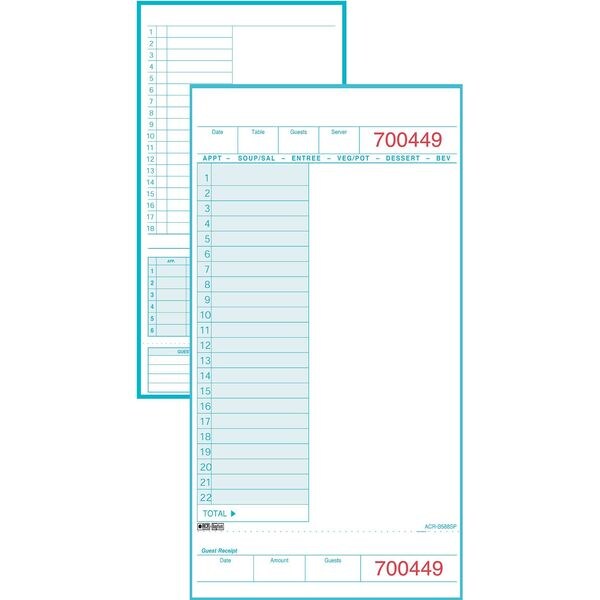 Guest Check Board, 1 Part, Cover Color Blue, Cover Material Paper, Length 8 1/2 in, Width 5 in, Number of Sheets 250, Package Quantity 8
