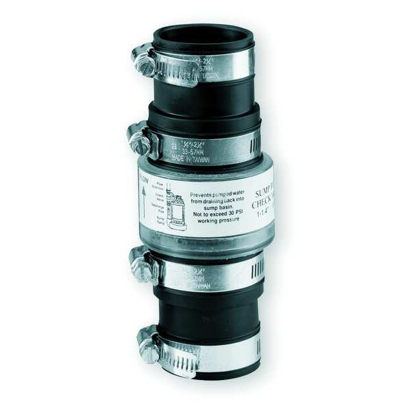 Item - Check Valves Check Valve, Flow Design Single, Mechanism and Body Design Inline Spring Swing, Body Material - Valves TPR, Pipe or Tube Size 1 1/4 in or 1 1/2 in, Connection Type Slip x Slip, Mounting Orientation Vertical, Max. Steam Pressure - Valves Not Rated, Application - Valves General Purpose