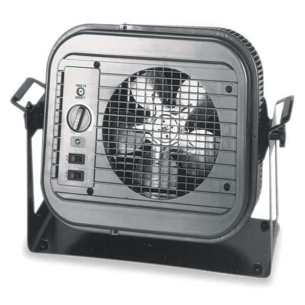 Electric Wall & Ceiling Unit Heater, Overall Height 16 in, Overall Width 21 in, Overall Depth 8 in, Air Flow 210 cfm, Air Temp. Rise 71 Degrees F, Voltage 208/240V AC, 1 Phase, Wattage Output 2.5kW/3.7kW, 3.3kW/5kW, Heating Method Fan Forced, Heating Capacity 11,372/17,065 BtuH, 8533/12,800, Mounting Location Ceiling, Wall, Horizontal Air Throw 12 ft, Frequency 60 Hz, Amperage 12A/17.8A, 13.8A/20.8A, Control Type Mechanical Selector Dial, Contactor Coil Voltage 240V AC, Housing Color Gray