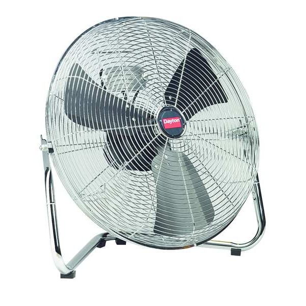 Floor Fan, Overall Style - Fans Floor, Fan Mounting Location Floor, Number of Speeds 3, Blade Dia. 20 in, Non-Oscillating, Fan Cord Length 9 ft, Fan Power Source Plug-In, 150/140/130 W Watts, 1600/1400/1300 RPM RPM, Number of Blades 3, Fan, Length 24 In., 1.3/1.2/1.0 A Amps, Height 24 in, Width 24 in, 60 Hz Hz, Bearing Type Sleeve, Blade Material Black Painted Steel, Steel, 3, 5-15P, Silver, cULus Listed E19455, OSHA compliant wire guards, Wall and Ceiling Bracket