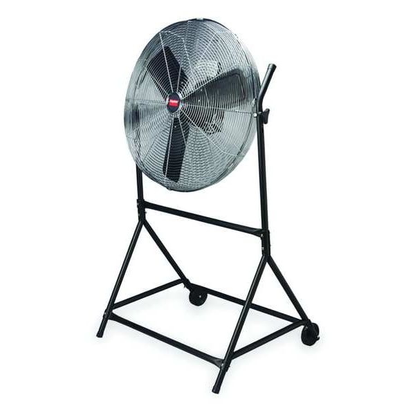 Mobile Floor Fan, Overall Style - Fans Mobile, Fan Mounting Location Floor, Number of Speeds 3, Blade Dia. 24 in, Non-Oscillating, Fan Cord Length 9 ft, Fan Power Source Plug-In, 310/270/240 W Watts, 1500/1300/1100 RPM RPM, Number of Blades 3, Fan, Length 34 In., 2.7/2.3/2.1 A Amps, Height 52 in, Width 34 in, 60 Hz Hz, Bearing Type Ball, Blade Material Black Painted Steel, Steel, 3, 5-15P, Black, cULus Listed E19455, OSHA compliant wire guards, 4 in Diameter Wheels, Cart, Tilt Kit