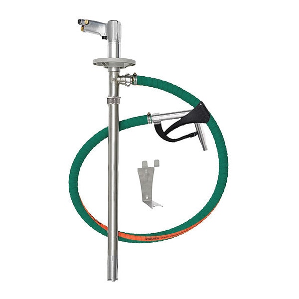 Air Drum Pump, Max. Air Pressure 100 psi, Spout Connection Size Not Applicable, Suction Tube Material Stainless Steel, Self-Priming Yes, Overall Length 51 in, Explosion Proof Yes, Discharge Connection Type Hose Barb, Spout Length Not Applicable, Food Grade No, Air Outlet Size 3/8 in, Bung Connection Dia. 2 in, Hose Length 72 in, Motor HP 3/4 hp, Variable Speed Yes, Includes Discharge Hose Yes, Noise Level 87 dB, Max. Viscosity 750 cps, Adapter Connection Type MNPT, Duty Cycle Intermittent