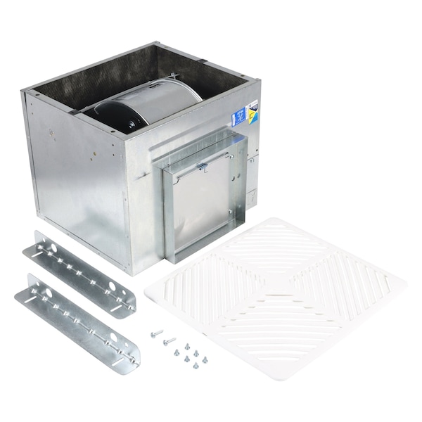Bath Exhaust Fan, Discharge Direction Horizontal and Vertical, Duct Shape Rectangular, Housing Finish Galvanized, Housing Material Steel, Heater Without Heater, Includes Acoustic Insulation, Grille, Mounting Brackets, Aluminum Backdraft Damper, Mounting Location Ceiling, Maximum Airflow 412 cfm, Exhaust Airflow @ 0.100 in SP 395 cfm, Exhaust Airflow @ 0.000 in SP 410 cfm, Maximum Noise Level 5.5 sones, Noise Level @ 0.100 in SP @ 5 ft 4.5 sones, Number of Speeds 1, Overall Depth 14 in