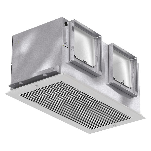 Bath Exhaust Fan, Discharge Direction Horizontal and Vertical, Duct Shape Rectangular, Housing Finish Galvanized, Housing Material Steel, Heater Without Heater, Includes Grille, Mounting Location Ceiling, Maximum Airflow 1,162 cfm, Exhaust Airflow @ 0.100 in SP 1,106 cfm, Exhaust Airflow @ 0.000 in SP 1,162 cfm, Maximum Noise Level 7.5 sones, Noise Level @ 0.100 in SP @ 5 ft 7 sones, Number of Speeds 2, Overall Depth 23 3/4 in, Overall Height 14 1/2 in, Overall Width 14 3/8 in