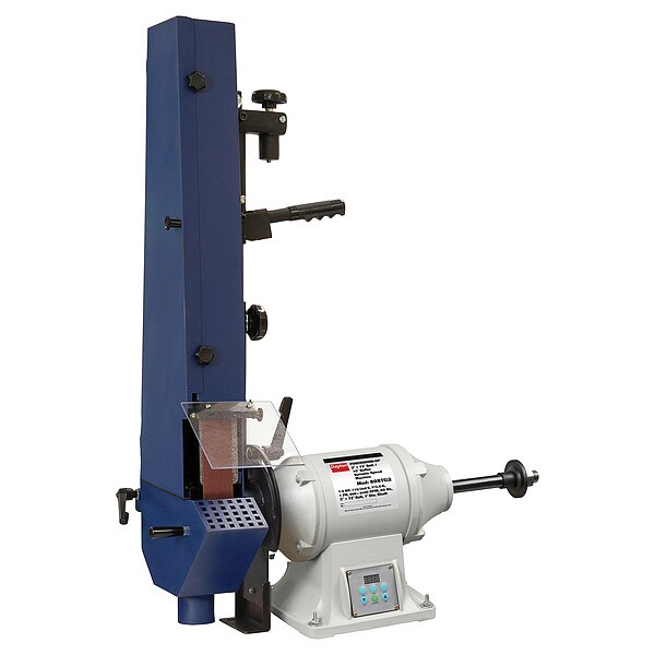 Belt Sander and Buffer, Product Type Buffer and Belt Bench Top Machine, Compatible Workpiece Material Metal, Plastic, Wood, Voltage 115 V, 230 V, Phase Single-Phase, Horsepower 1 1/2 hp, Mounting Location Benchtop, Belt Speed 5,000 SFPM, Grinding Wheel Diameter 10 in, Grinding Wheel Speed 2,400 RPM, Speed Settings Variable, Belt Length 72 in, Belt Width 2 in