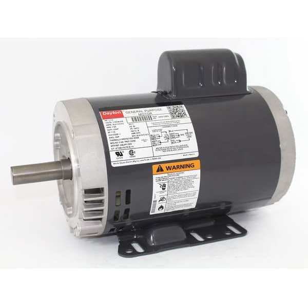General Purpose Motor, Single Phase, Motor Design Capacitor-Start, 1 1/2 hp HP, Nameplate RPM 1,725 RPM, No. of Speeds 1, Voltage 115/208-230V AC, Full Load Amps 19.2/10-9.6 A, 145TC Frame, Usable @ 208V Usable at 208V, Hz 60 Hz, Motor Service Factor 1.15, Max. Ambient Temp. 40 Degrees C, Motor Thermal Protection None, Duty Cycle Continuous, Ins. Class B, Motor Enclosure Design Open Drip Proof, Motor Shaft Rotation CW/CCW, Motor Mounting Type C-Face, Rigid Base, Motor Mounting Position All Angle