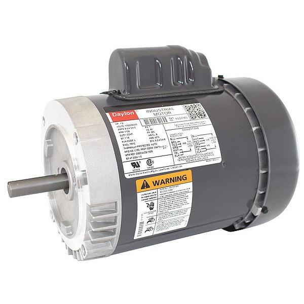General Purpose Motor, Single Phase, Motor Design Capacitor-Start, 1/2 hp HP, Nameplate RPM 1,725 RPM, No. of Speeds 1, Voltage 115/208-230V AC, Full Load Amps 9.0/4.3-4.5 A, 56C Frame, Usable @ 208V Usable at 208V, Hz 60 Hz, Motor Service Factor 1.15, Max. Ambient Temp. 40 Degrees C, Motor Thermal Protection Auto, Duty Cycle Continuous, Ins. Class B, Motor Enclosure Design Totally Enclosed Fan Cooled, Motor Shaft Rotation CW/CCW, Motor Mounting Type C-Face, Rigid Base
