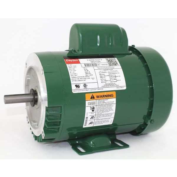 Farm Duty Motor, Single Phase, Motor Design Capacitor-Start, 3/4 hp HP, Nameplate RPM 1,725 RPM, No. of Speeds 1, Voltage 115/230V AC, Full Load Amps 11.4/5.7 A, 56C Frame, 60 Hz Hz, Motor Service Factor 1.15, Motor Thermal Protection Manual, Ins. Class B, Max. Ambient Temp. 40 Degrees C, Duty Cycle Continuous, Motor Shaft Rotation CW/CCW, Motor Enclosure Design Totally Enclosed Fan Cooled, Motor Mounting Type C-Face, Rigid Base, Motor Mounting Position Horizontal, Motor Frame Material Steel