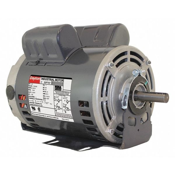 General Purpose Motor, Single Phase, Motor Design Capacitor-Start/Run, 1/2 hp HP, Nameplate RPM 1,140 RPM, No. of Speeds 1, Voltage 115/230V AC, Full Load Amps 4.8/2.4 A, 56 Frame, Hz 60 Hz, Motor Service Factor 1.25, Max. Ambient Temp. 40 Degrees C, Motor Thermal Protection None, Duty Cycle Continuous, Ins. Class B, Motor Enclosure Design Open Drip Proof, Motor Shaft Rotation CW/CCW, Motor Mounting Type Cradle Base, Motor Mounting Position Horizontal, Inverter Rated Not Inverter Rated