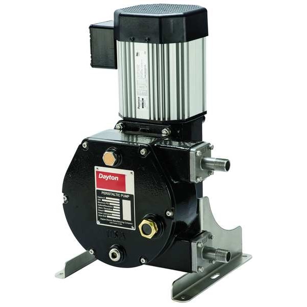 Chemical Metering Pump, Discharge Connection Size 1/2 in, Discharge Connection Type NPT, Flow Rate (Maximum) 1,007.8 gpd, Flow Rate (Minimum) 1,007.8 gpd, Horsepower (Maximum) 11/32 hp, Intake Connection Size 3/8 in, Intake Connection Type Hose, Media Temperature (Maximum) 160 Degrees F, Nameplate Voltage 115/230V AC, Number of Feeds 1, Pressure (Maximum) 125 psi, Reproducibility +/-5.0 Percent, Tubing Material Rubber, Viscosity (Maximum) 2,000 cps, Roller Material Stainless Steel