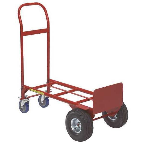Convertible Hand Truck, Load Capacity as Hand Truck 650 lb, Load Capacity as Platform Truck 750 lb, Platform Height 11 in, Platform Length 38 in, Platform Width 13 5/8 in, Nose Plate Depth 8 in, Nose Plate Width 14 in, Nose Plate Type Solid Straight, Nose Plate Profile Standard, Frame Material Steel, Frame Type Flat Back, Handle Type Dual