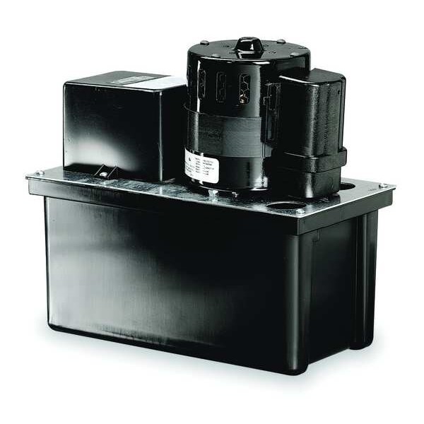 Condensate Removal Pump, Discharge Connection Style Barbed, Horsepower 1/5 hp, Includes Thermal Overload Protector, Intake Connection Style Open, Maximum Feet of Head 45 ft, Maximum Flow Rate @ 10 Feet of Head 6.9 gpm, Maximum Flow Rate @ 15 Feet of Head 6.3 gpm, Maximum Flow Rate @ 1 Foot of Head 7.5 gpm, Maximum Flow Rate @ 20 Feet of Head 5.6 gpm, Maximum Media Temperature 120 Degrees F, Nameplate Voltage 115V AC, Plenum Rated No, Pump Type Standard, Series VCL-45ULS, Series Family VCL
