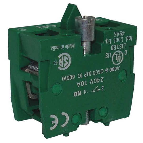 Contact Block, Contact Form 1NO, Contact Rating 10A @ 600V AC/DC, For Use With 32W265, 32W267, 32W268, 32W271, 32W272, 32W273, 32W278, 32W279, Action Momentary, 22 mm, Application Operator, NEMA Contact Rating Designation A600/Q600, Color Green, Standards cULus