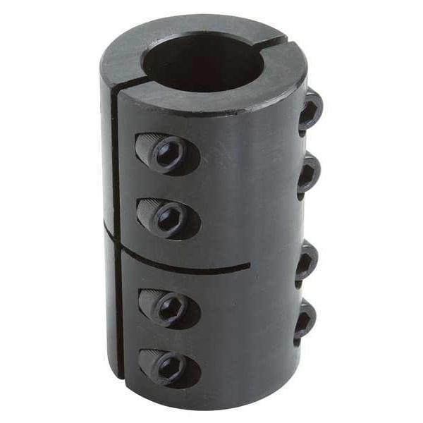 Rigid Shaft Coupling, Bore Diameter 1 1/2 in, Bore Diameter 2 1/2 in, Bore Type Round, Clearance Diameter 1.22 in, Coupling Construction Two-Piece, Coupling Material Carbon Steel, Coupling Outside Diameter 1 1/8 in, Different Bore Sizes No, Keyway Depth 1 Not Applicable, Keyway Depth 2 Not Applicable, Minimum Bore Diameter Not Applicable, Keyway Width 1 Not Applicable, Keyway Width 2 Not Applicable, Maximum Bore Diameter Not Applicable, Maximum Speed 4,000 RPM, Maximum Torque 480 in-lb