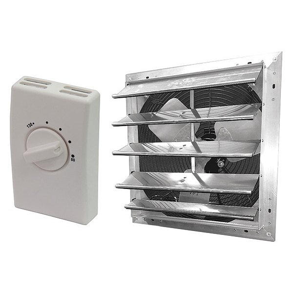 Attic Exhaust Fan, Control Type Thermostat, Blade Material Aluminum, Exhaust Airflow @ 0.000 in SP 1,785 cfm, Fire Safety Shut-Off No, High-Efficiency Motor No, Housing Material Aluminum, Includes Humidistat No, Includes Shutter Yes, Includes Thermostat Yes, Maximum Attic Area 2,300 sq ft, Motor Horsepower 1/15 hp, Mounting Location Gable, Nameplate Voltage 120V AC, Overall Height 21 1/4 in, Overall Length 8 in, Overall Width 21 1/4 in, Dome Shape Not Applicable, Dome Width Not Applicable