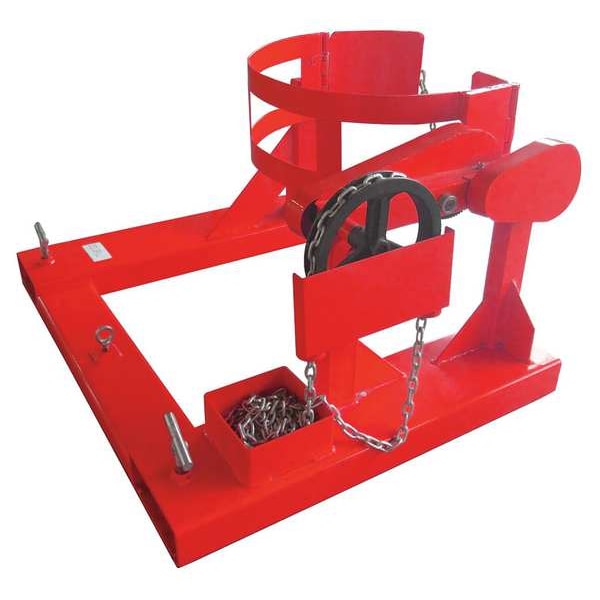 Drum Lifter, Overall Height 19 in, Overall Length 30 1/2 in, Overall Width 39 in, Compatible Drum Material Steel, Number of Drums 1, Load Capacity - Maximum 1,500 lb, Compatible Drum Capacity 55 gal, Jaw Functions Rotate, Compatible Fork Length 35 in, Compatible Fork Width 7 in, Compatible Fork Height 2 1/4 in, Color Red, Material Steel, Drum Rotation 360 Degrees , Fork Pocket Spacing 38 in, Product Type Drum Dispenser