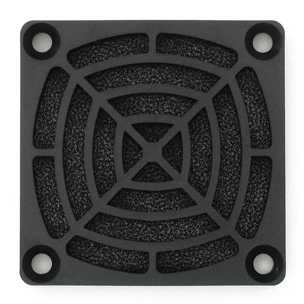 Compact Axial Fan Filter and Guard Assembly, Radiator Connection 2 3/8 in, Media Material Polyurethane Foam, Fits Fan Shape Square, 2 3/8 in Height, 2 3/8 in Width, 1/4 in Depth, Mounting Eye O.C. (4) 1-31/32 in, Frame Material Plastic, Finish Black, PPI Rating 30, Includes Fan Guard, Filter Media and Retainer, Standards E56070, E60874, RoHS, UL