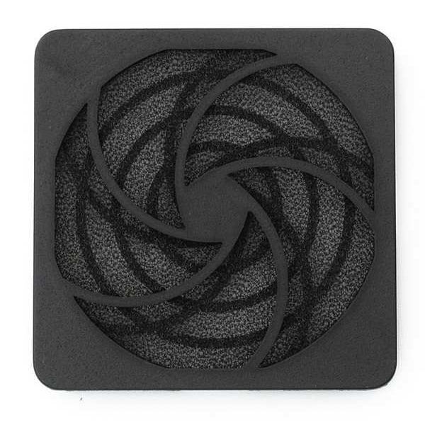 Compact Axial Fan Filter and Guard Assembly, Radiator Connection 3 1/8 in, Media Material Polyurethane Foam, Fits Fan Shape Square, 3 1/8 in Height, 3 1/8 in Width, 3/8 in Depth, Mounting Eye O.C. (4) 2-13/16 in, Frame Material Plastic, Finish Black, PPI Rating 30, Includes Fan Guard, Filter Media and Retainer, Standards E56070, E60874, RoHS, UL