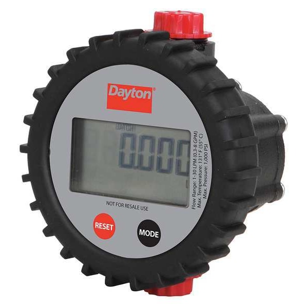 Electronic Flowmeter, Product Type Electronic Flowmeter, Flowmeter Type Electromagnetic, Accuracy +/-0.5 Percent, Connection Size 1/2 in, Connection Type FNPT, Compatible Flow Material Diesel, Antifreeze, Kerosene, Oils, Media Temperature - Maximum 131 Degrees F, Media Temperature - Minimum 7 Degrees F, Viscosity - Maximum 9,400 SUS, Housing Material Aluminum, O-Ring Material Buna-N, Wetted Material Acetal, Aluminum, Buna-N, Steel, Display Type Digital, Flow Rate - Maximum 8 gpm