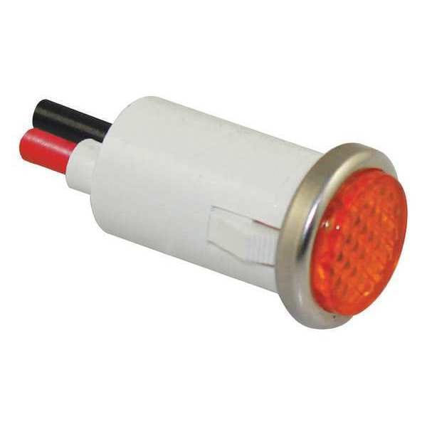 Flush Panel Light, LED, Nylon Body With Polycarbonate Lens and Stainless Steel Bezel, Amber, Voltage 120V AC/DC, Size 1/2 in Mounting dia, Electrical Connection 6 in Wire Leads, Shape Round, Current Drawn 4.16 mA, Average Life 25,000 hr, IP Rating IP40, Panel Thickness 0.030 in to 0.093 in, Standards UL Listed