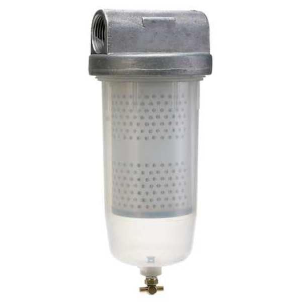 Filter Housing, Housing Material Aluminum, Polypropylene, Flow Rate 5 gpm, Connection Size 3/4 in, Overall Height 10 1/4 in, Overall Diameter 4 1/4 in, Connection Type NPT, Overall Length 4 1/4 in, Overall Width 4 1/4 in, Color Clear, Head Material Aluminum, Includes Contaminant Filter, Maximum Pressure 150 psi, Maximum Temperature 140 Degrees F, Micron Rating 10 micron