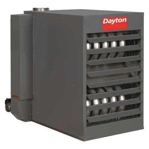 Gas Unit Heater, Gas Type LP, Combustion Type Separated, Fan Type Propeller, BtuH Input 150,000, BtuH Output 124,500, 2,400 cfm Air Flow, 6.9 Full Load Amps, Gas Connection 1/2 In., Flue Dia. 5 in, O.C. Mounting 18 5/8 in, Height 33-3/4 In., Width 25-1/4 In., Depth 43-1/2 In., Heater Voltage 120 V AC, 60 Hz, Air Temp. Rise 47 Degrees F, Installation Height 8 to 15 ft., Ignition System Direct Spark, Primary Heat Exchanger Material Aluminized Steel, Drive Type Direct, Vent Power