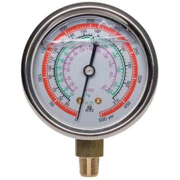 High Side Gauge, Diameter 2 3/4 in, Working Pressure 0 to 500 psi, Connection Size 1/8 in, Color Red, Gauge Type High Side Gauge, For Use With R-12, R-22, R-502, Application Replacement Manifold Gauge for Manifold Gauge Sets