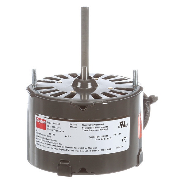 HVAC Motor, Single Phase, Motor Design Shaded Pole, 1/100 hp HP, Nameplate RPM 1,550 RPM, No. of Speeds 1, Voltage 115V AC, 0.7 A Full Load Amps, 3.3 Frame, Output Watts 7.4 W, 60 Hz Hz, Usable @ 208V Not Usable at 208V, Usable @ 200V Not Usable at 200V, Motor Service Factor 1, Motor Thermal Protection Auto, Ins. Class B, Duty Cycle Continuous, Max. Ambient Temp. 40 Degrees C, Motor Shaft Rotation CWSE, Motor Enclosure Design Open Air Over, Motor Mounting Type Stud, Motor Frame Material Steel