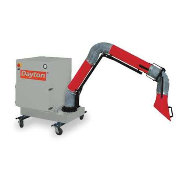 Industrial Air Cleaner, Maximum Air Flow 1,000 cfm, Minimum Air Flow 1,000 cfm, Extraction Arm Diameter 6 in, Extraction Arm Length (Maximum) 8 ft, Filter Efficiency 95 Percent, Power Consumption 1,250 W, Sound Level 75 dB, Filter MERV Rating 17, Filter Type HEPA Filter, Prefilter, Reusable Pleated Filter, Spark Arrestor, Input Voltage 120V AC, Motor Horsepower (Maximum) 1 1/2 hp, Features 5-15P NEMA Plug, Frequency 60 Hz, Housing Height 58.8 in
